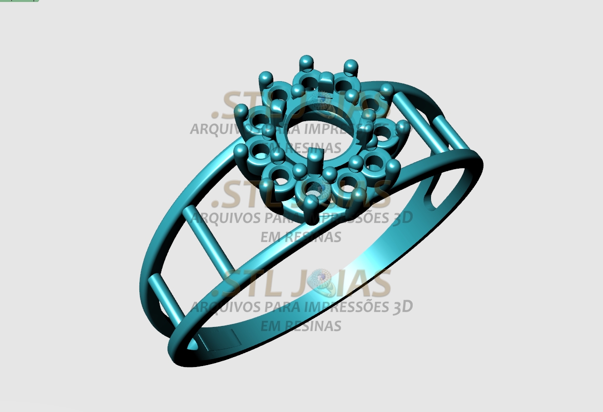 Receba o arquivo ANEL CHUVEIRO Formato (.STL) destinado à impressão 3D em resinas, para fabricação de joias.