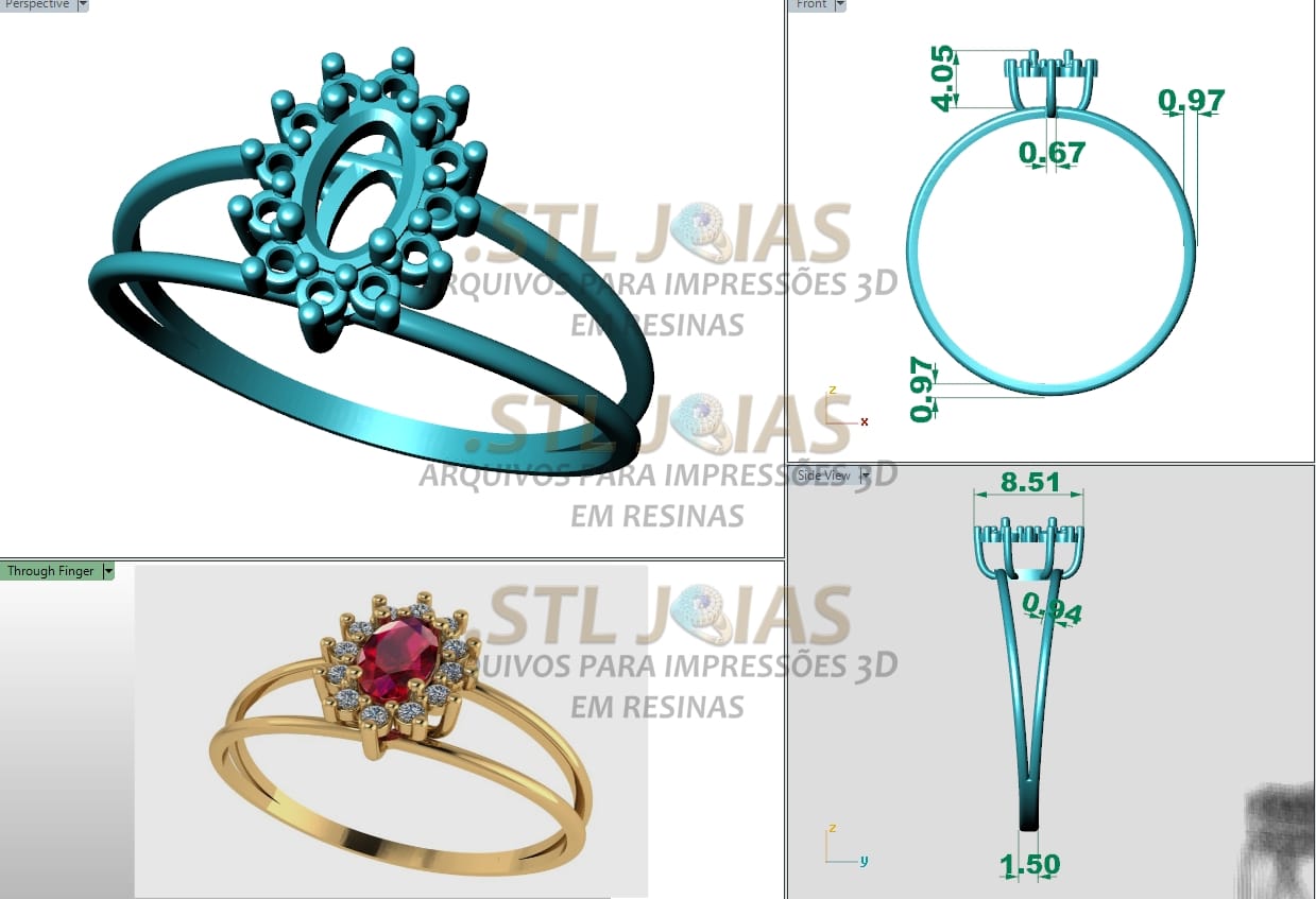 Receba o arquivo (.STL) destinado à impressão 3D em resinas, para fabricação de joias.