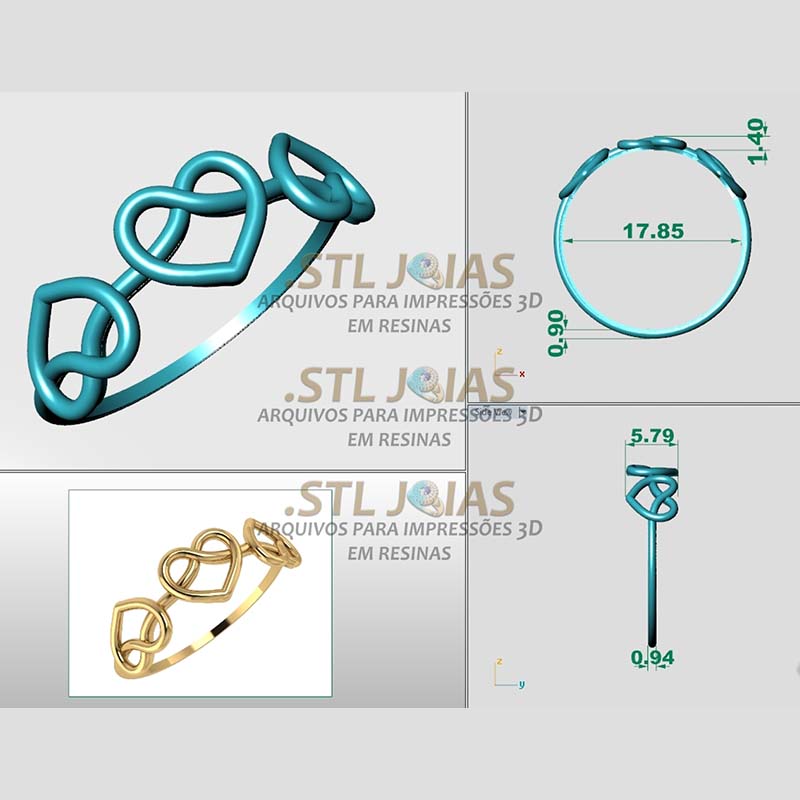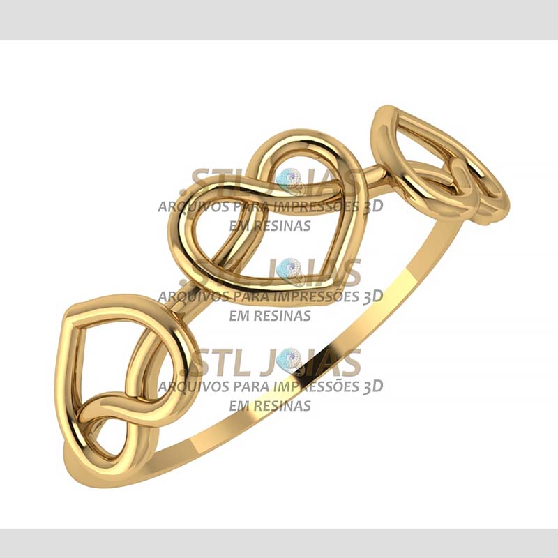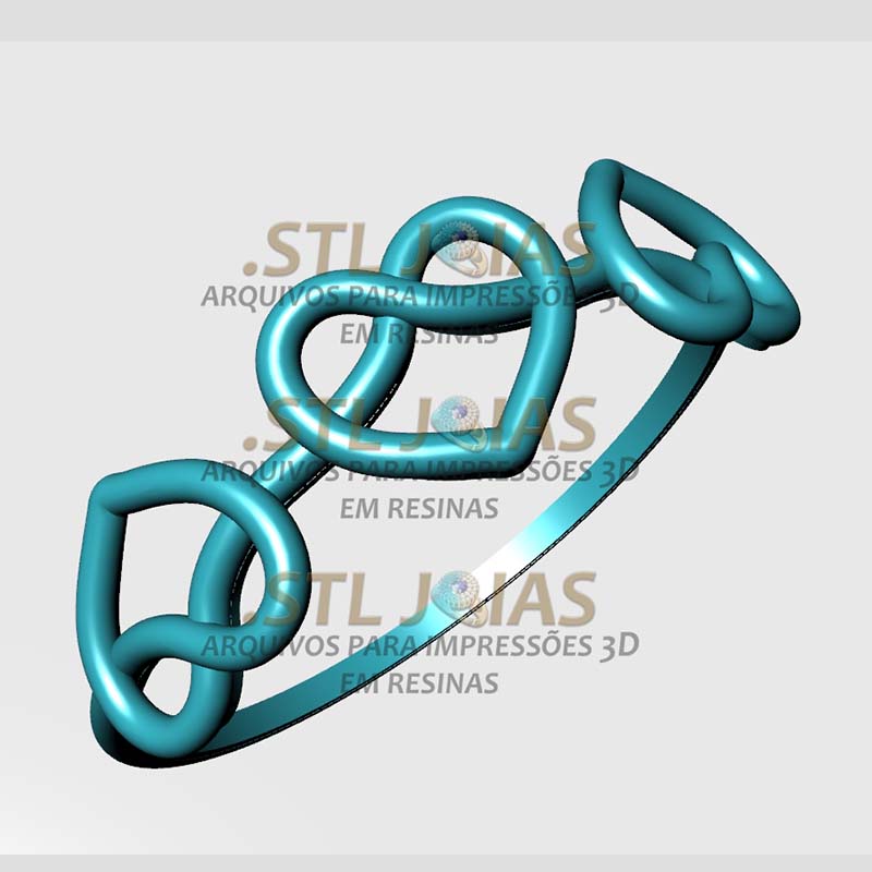 Receba o arquivo (.STL) ANEL CORAÇÕES AMARRADOS, destinado à impressão 3D em resinas, para fabricação de joias.