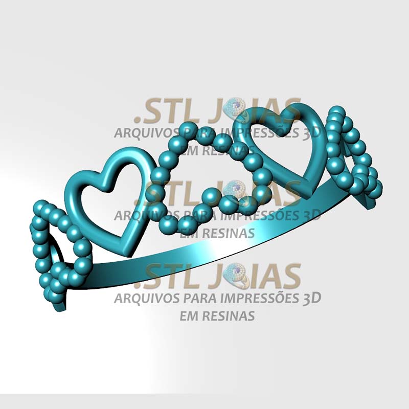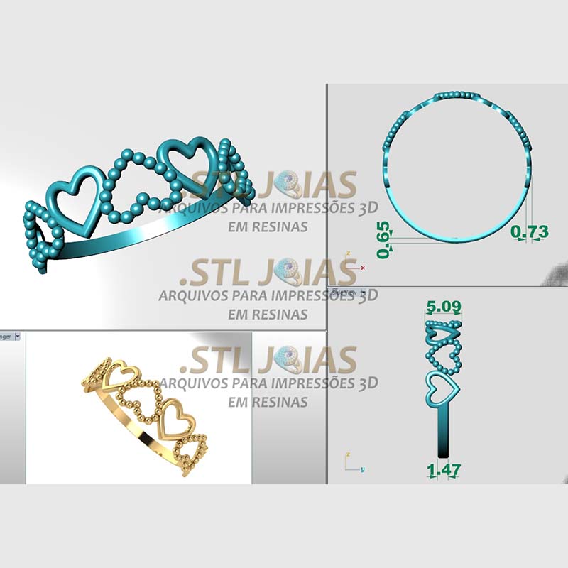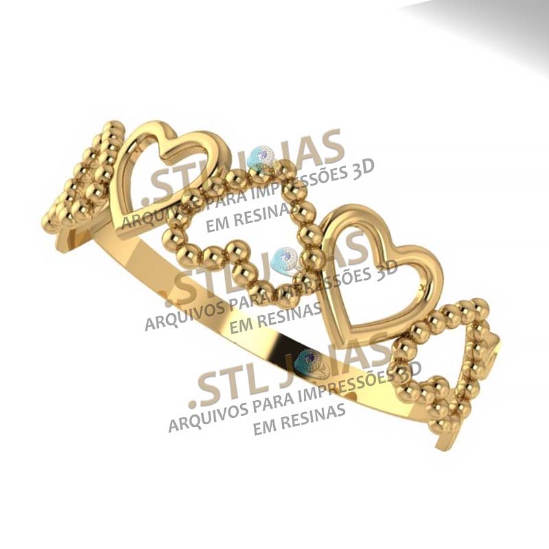 Receba o arquivo (.STL) ANEL CORAÇÕES, destinado à impressão 3D em resinas, para fabricação de joias.