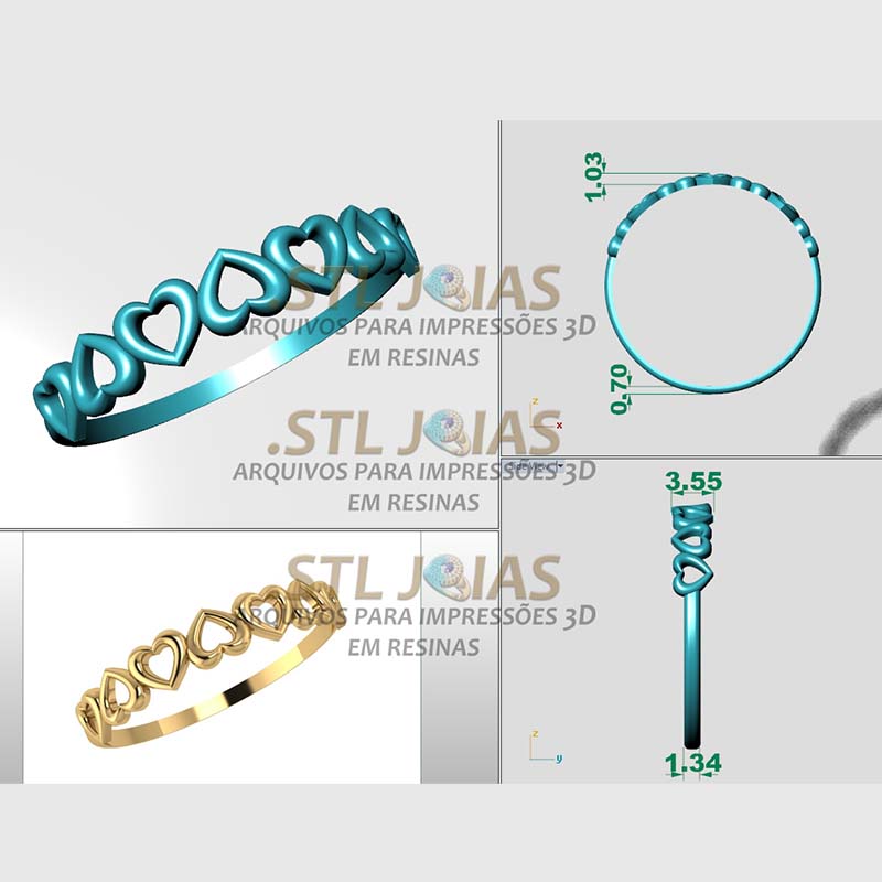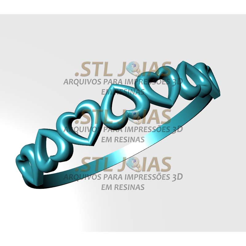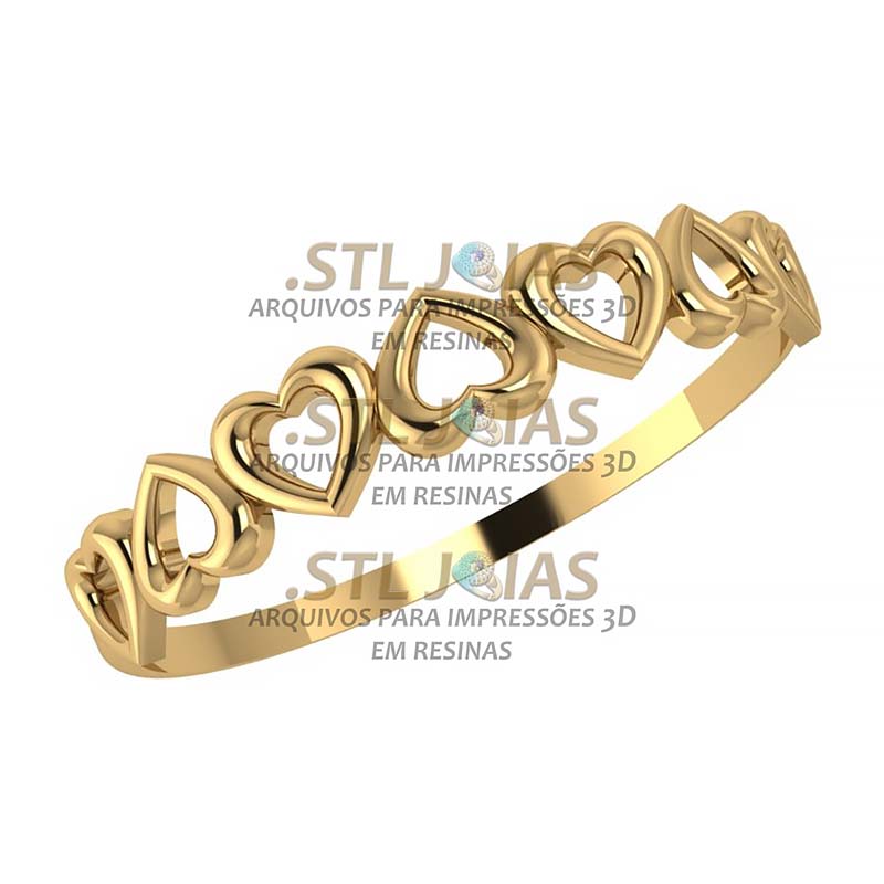 Receba o arquivo (.STL) ANEL CORAÇÕES, destinado à impressão 3D em resinas, para fabricação de joias.