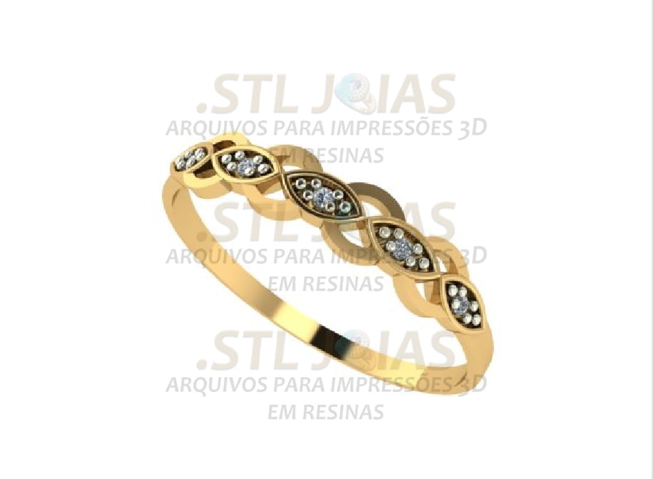 Receba o arquivo (.STL) ANEL CRAVEJADO destinado à impressão 3D em resinas, para fabricação de joias.