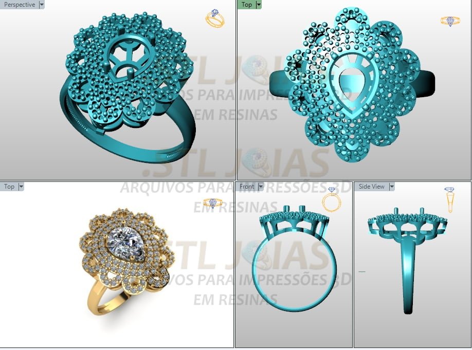 Receba o arquivo (.STL) destinado à impressão 3D em resinas, para fabricação de joias.