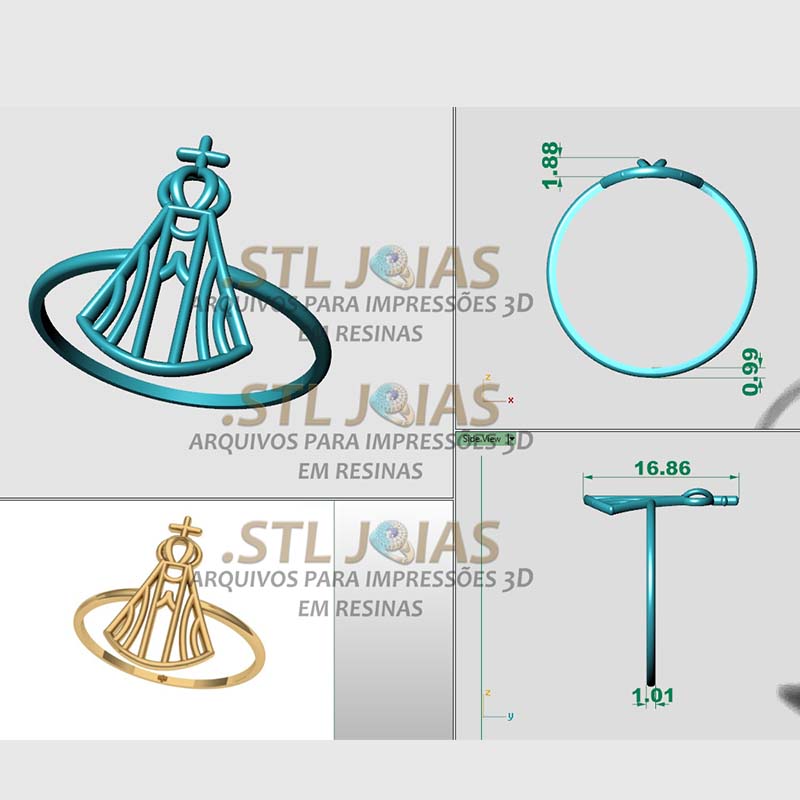 Receba o arquivo (.STL) ANEL SANTA VAZADO, destinado à impressão 3D em resinas, para fabricação de joias.