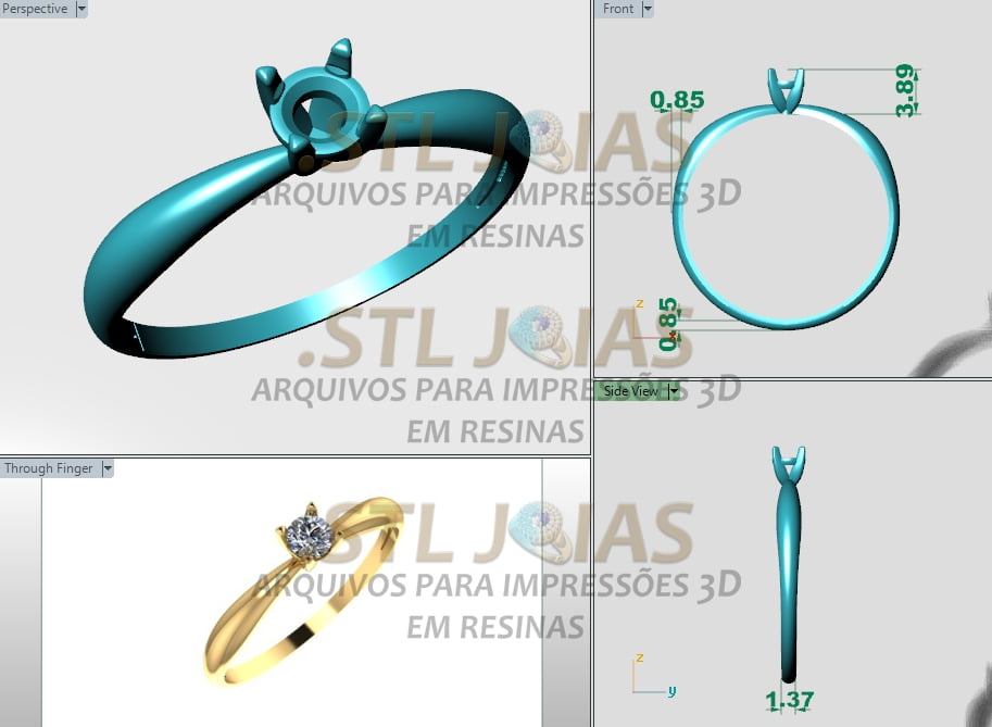 Este pacote é composto por: (arquivo DIGITAL ANEL SOLITÁRIO CRAVEJADO .STL para impressão 3d .STL + imagens).