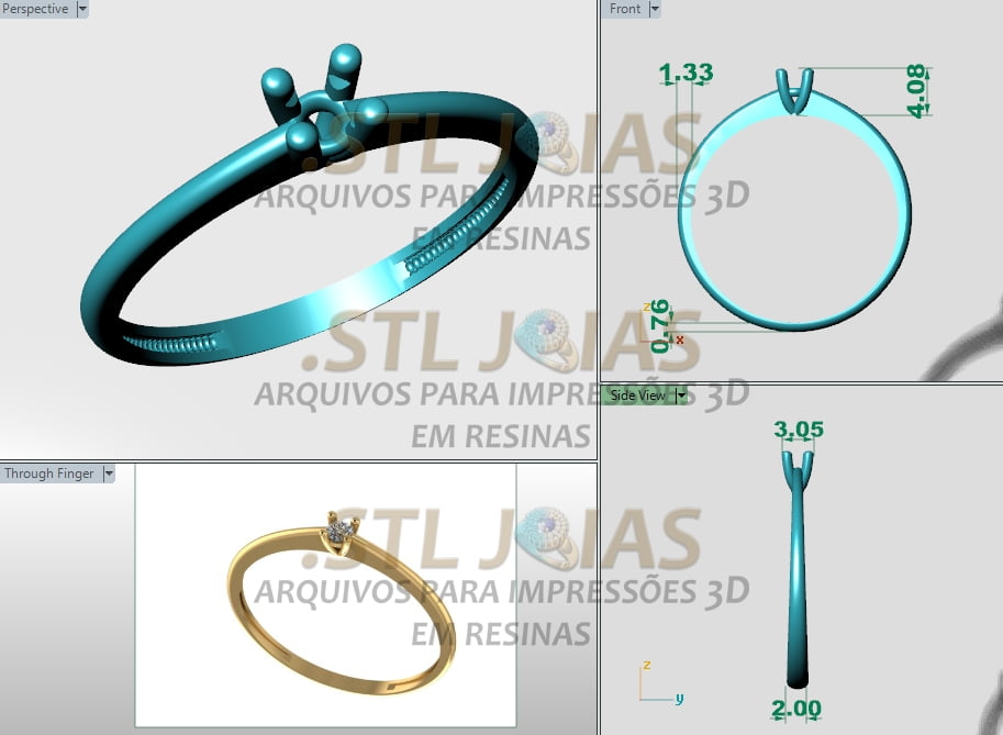 Este pacote é composto por: (arquivo DIGITAL ANEL SOLITÁRIO CRAVEJADO .STL para impressão 3d .STL + imagens).