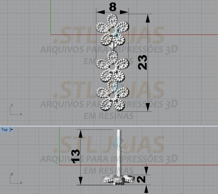 Este pacote é composto por: (arquivo DIGITAL BRINCO FLORES CRAVEJADAS para impressão 3d .STL + imagens).