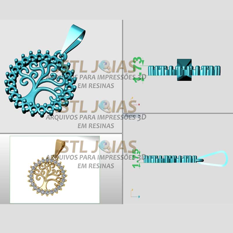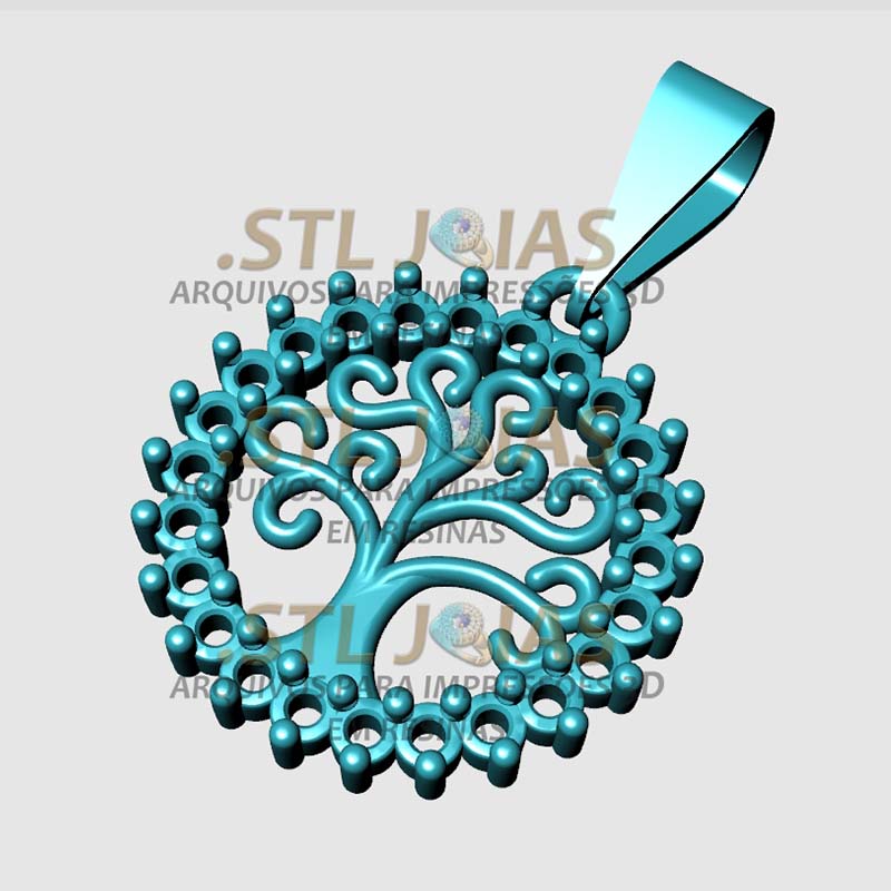 Receba o arquivo (.STL) PINGENTE ARVORE DA VIDA CRAVEJADO, destinado à impressão 3D em resinas, para fabricação de joias.