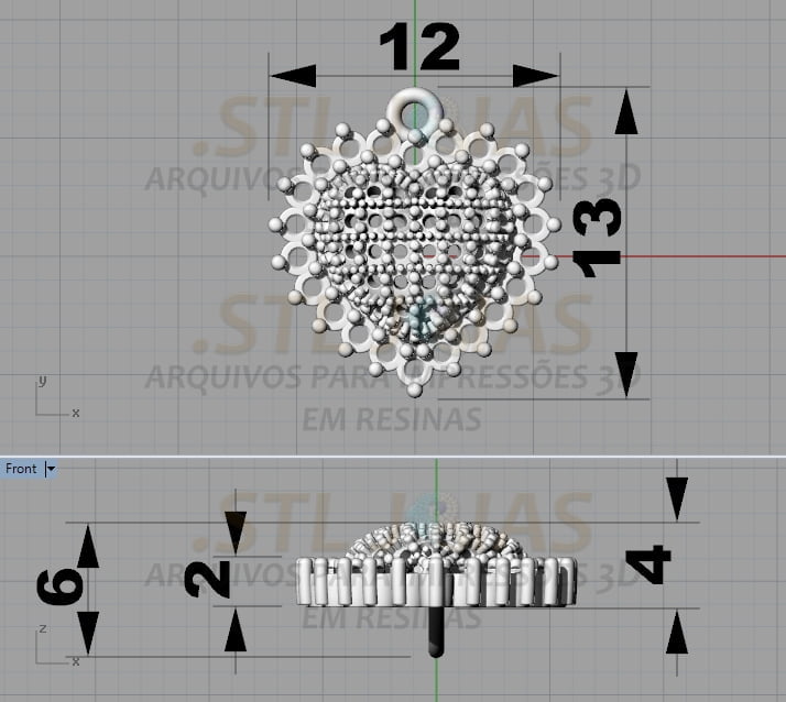 Receba o arquivo PINGENTE CORAÇÃO CRAVEJADO (.STL) destinado à impressão 3D em resinas, para fabricação de joias.