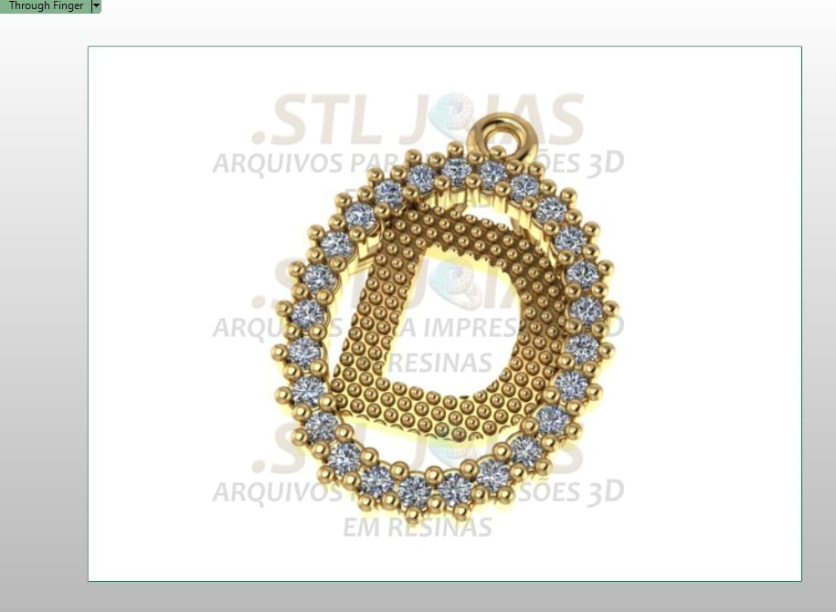 Receba o arquivo PINGENTE LETRA D (.STL) destinado à impressão 3D em resinas, para fabricação de joias.