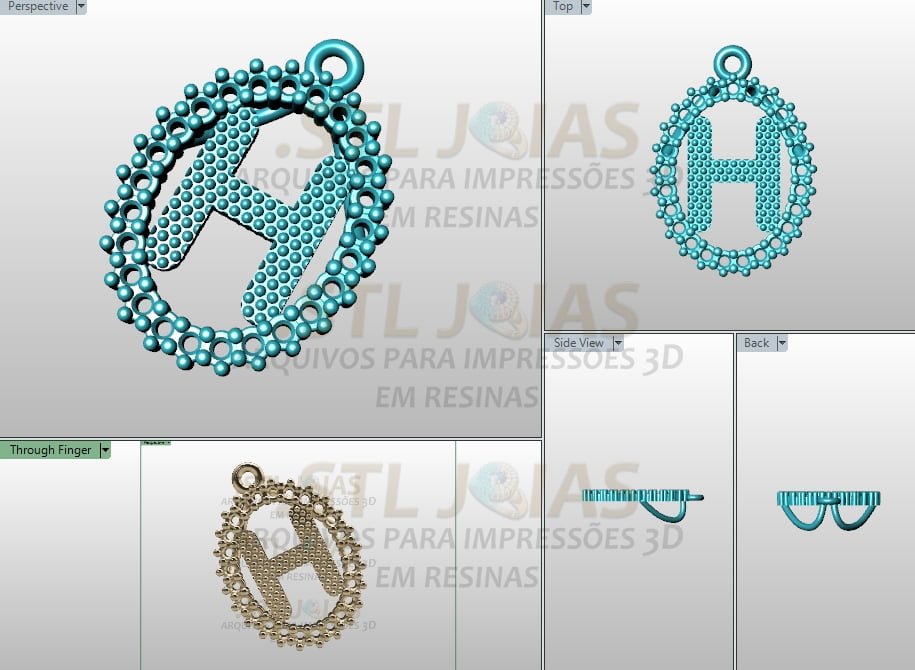 Receba o arquivo PINGENTE LETRA H (.STL) destinado à impressão 3D em resinas, para fabricação de joias.