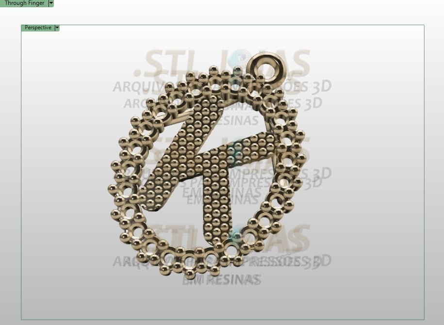 Receba o arquivo PINGENTE LETRA K (.STL) destinado à impressão 3D em resinas, para fabricação de joias.