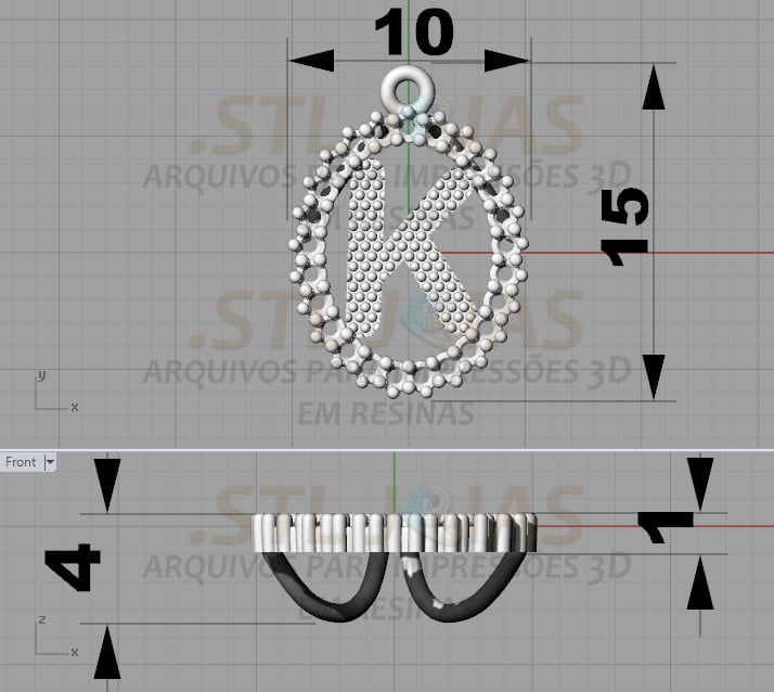 Este pacote é composto por: (arquivo DIGITAL PINGENTE LETRA K para impressão 3d .STL + imagens).