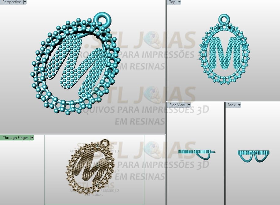 Receba o arquivo PINGENTE LETRA M (.STL) destinado à impressão 3D em resinas, para fabricação de joias.