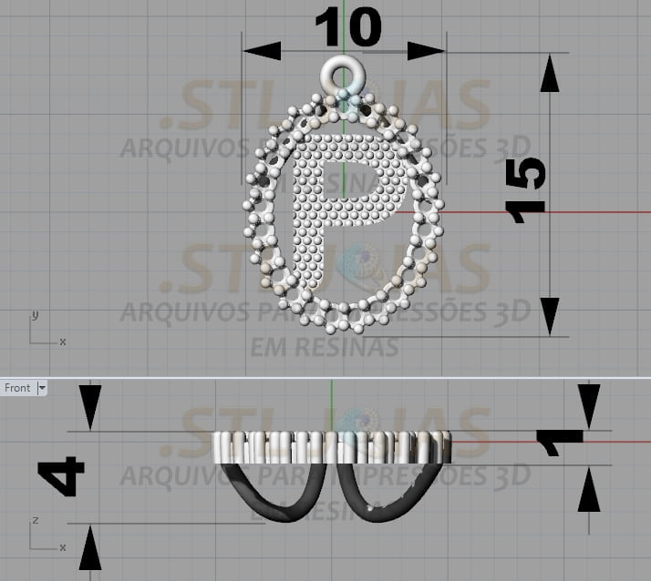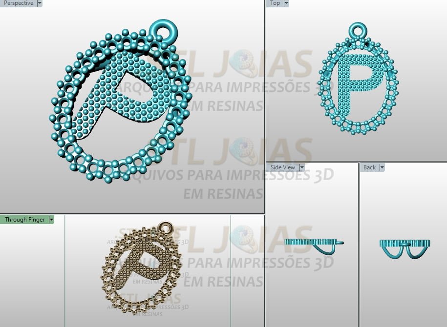Receba o arquivo PINGENTE LETRA P (.STL) destinado à impressão 3D em resinas, para fabricação de joias.