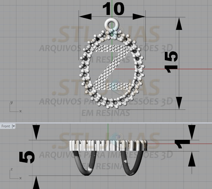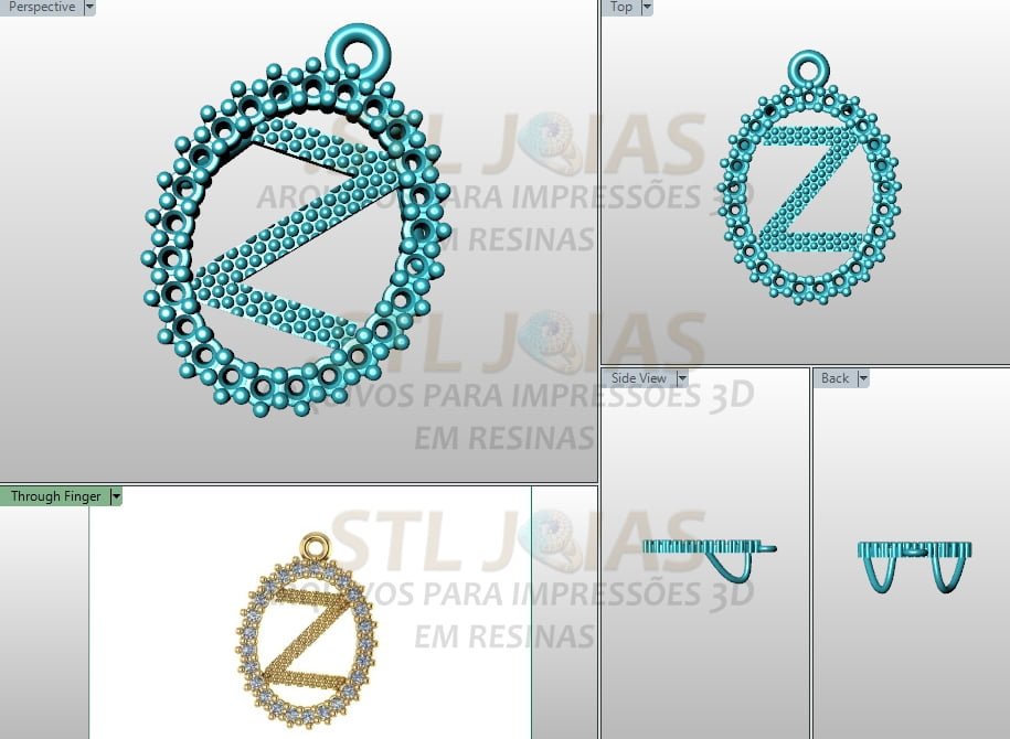 Receba o arquivo PINGENTE LETRA Z (.STL) destinado à impressão 3D em resinas, para fabricação de joias.